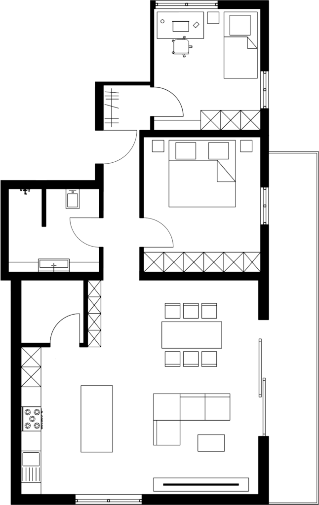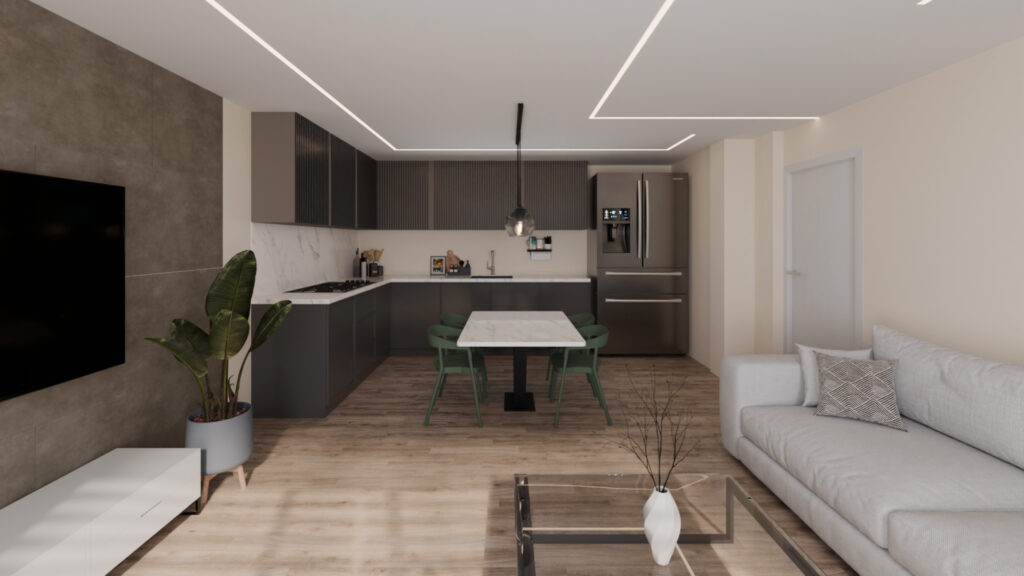 Die Wohnung verfügt über eine großzügige Wohnfläche von 100 Quadratmetern und ist äußerst geschmackvoll gestaltet. Beim Betreten der Immobilie werden Sie sofort von der hellen und freundlichen Atmosphäre empfangen, die durch die raumhohen Fenster und das durchdachte Raumkonzept entsteht. Der offene Wohn- und Essbereich lädt zu gemütlichen Stunden mit Familie und Freunden ein und bietet dank des direkten Zugangs zum Balkon ein nahtloses Indoor-Outdoor-Wohngefühl.